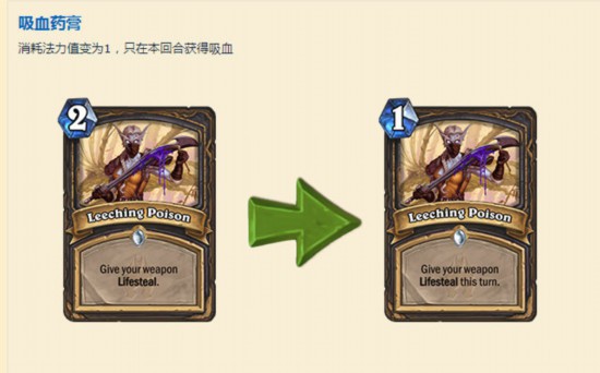 如今这套卡组的核心组件“吸血”机制被修改,尽管费用降低,但只能在本回合吸血。直接变成废卡。